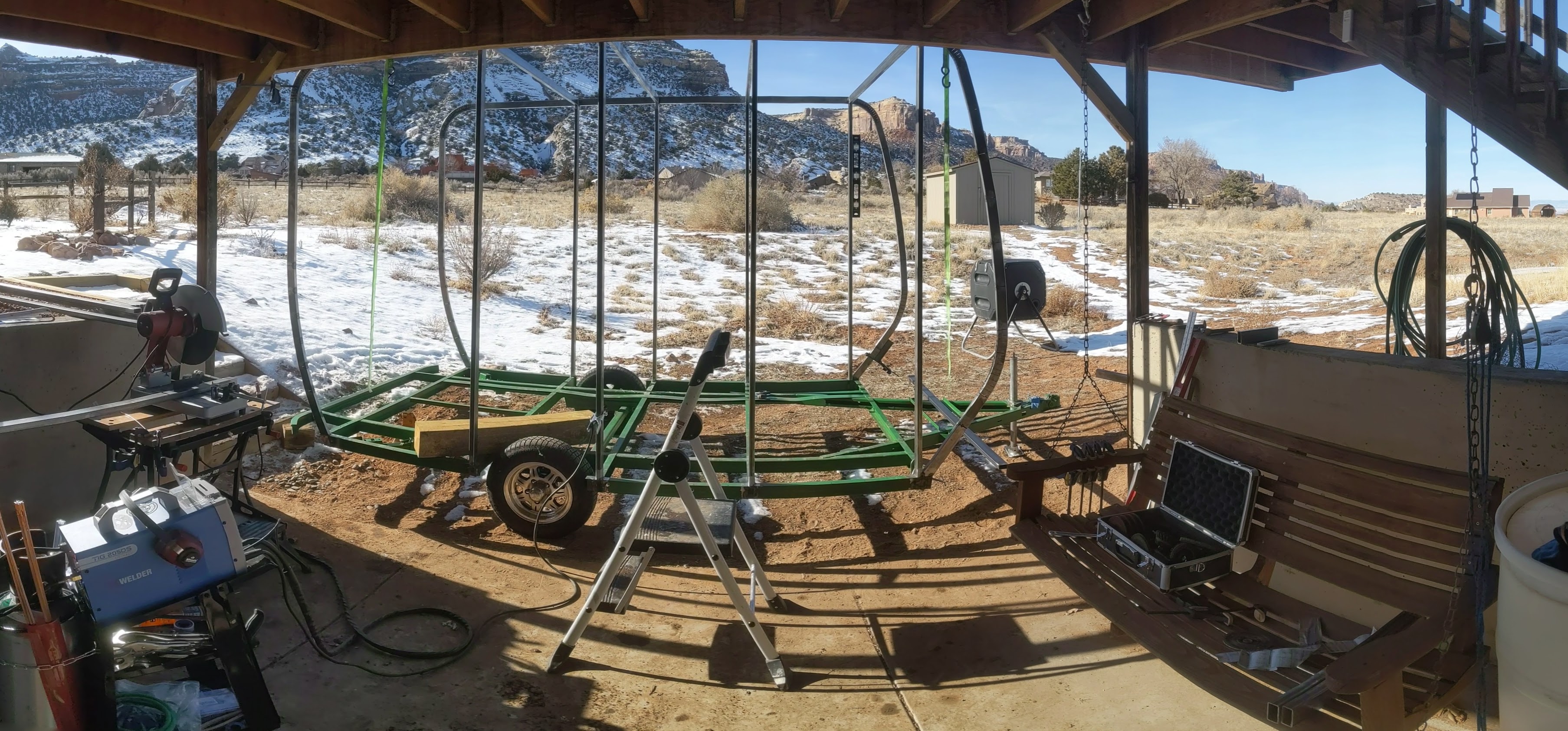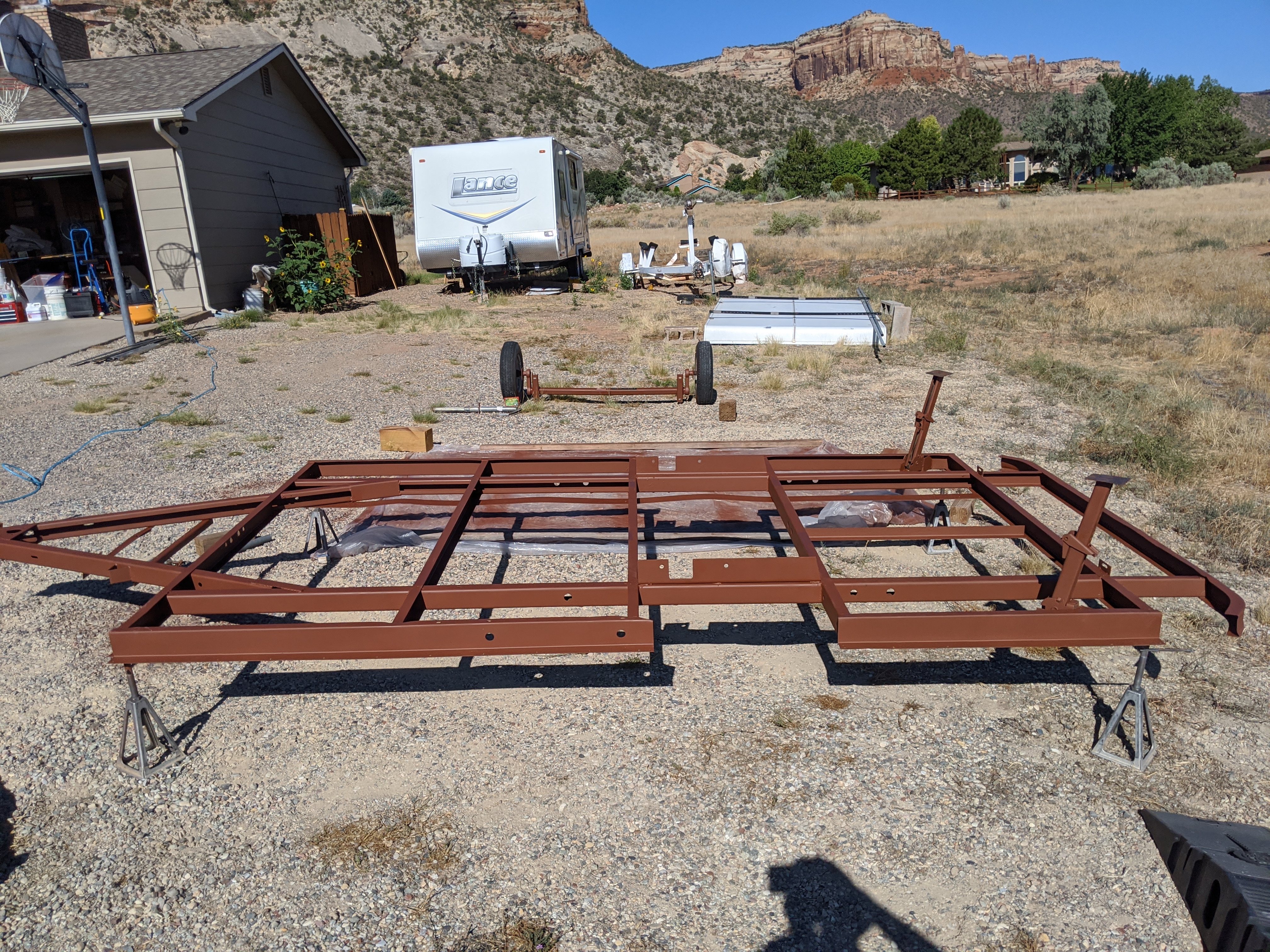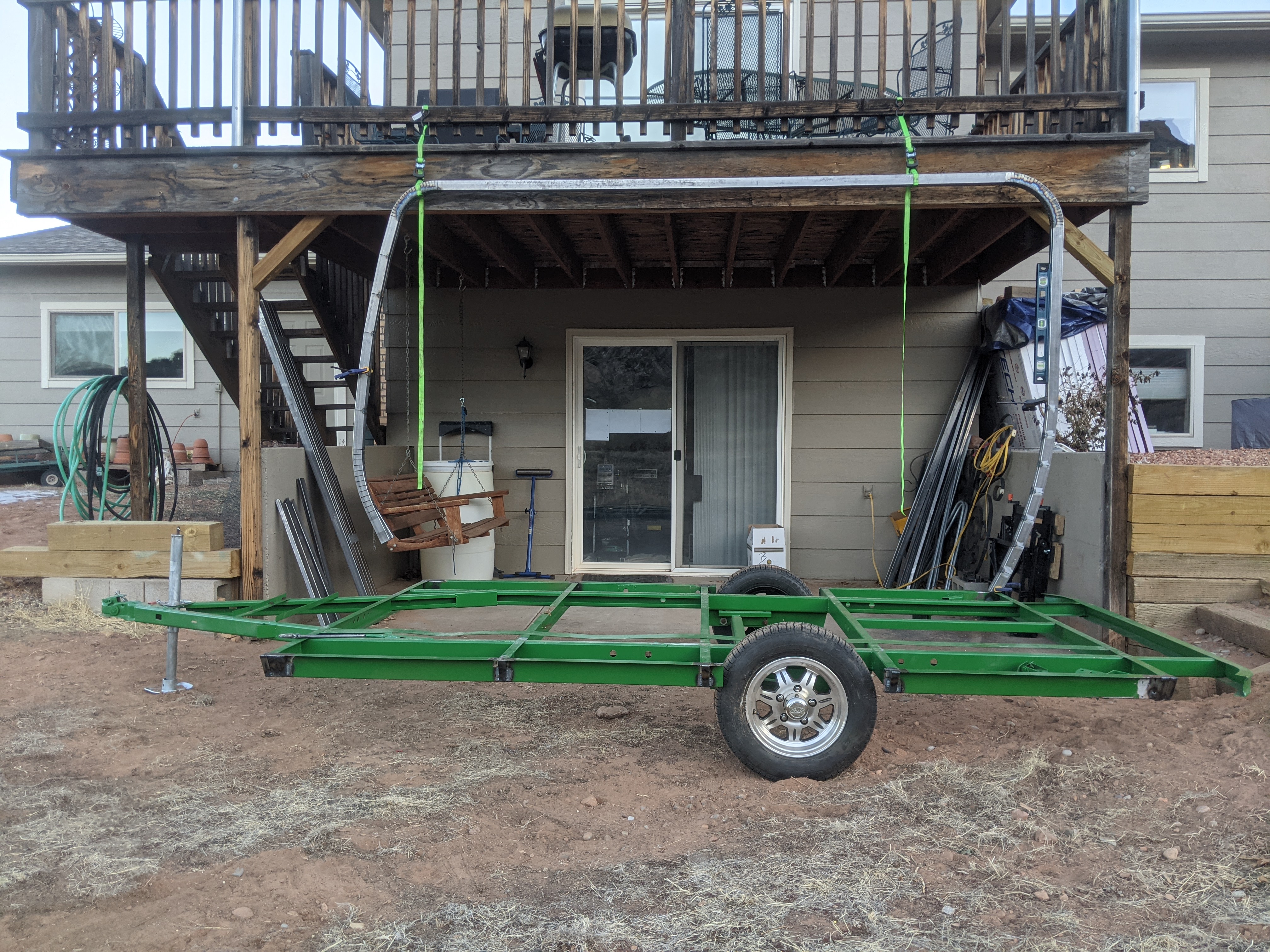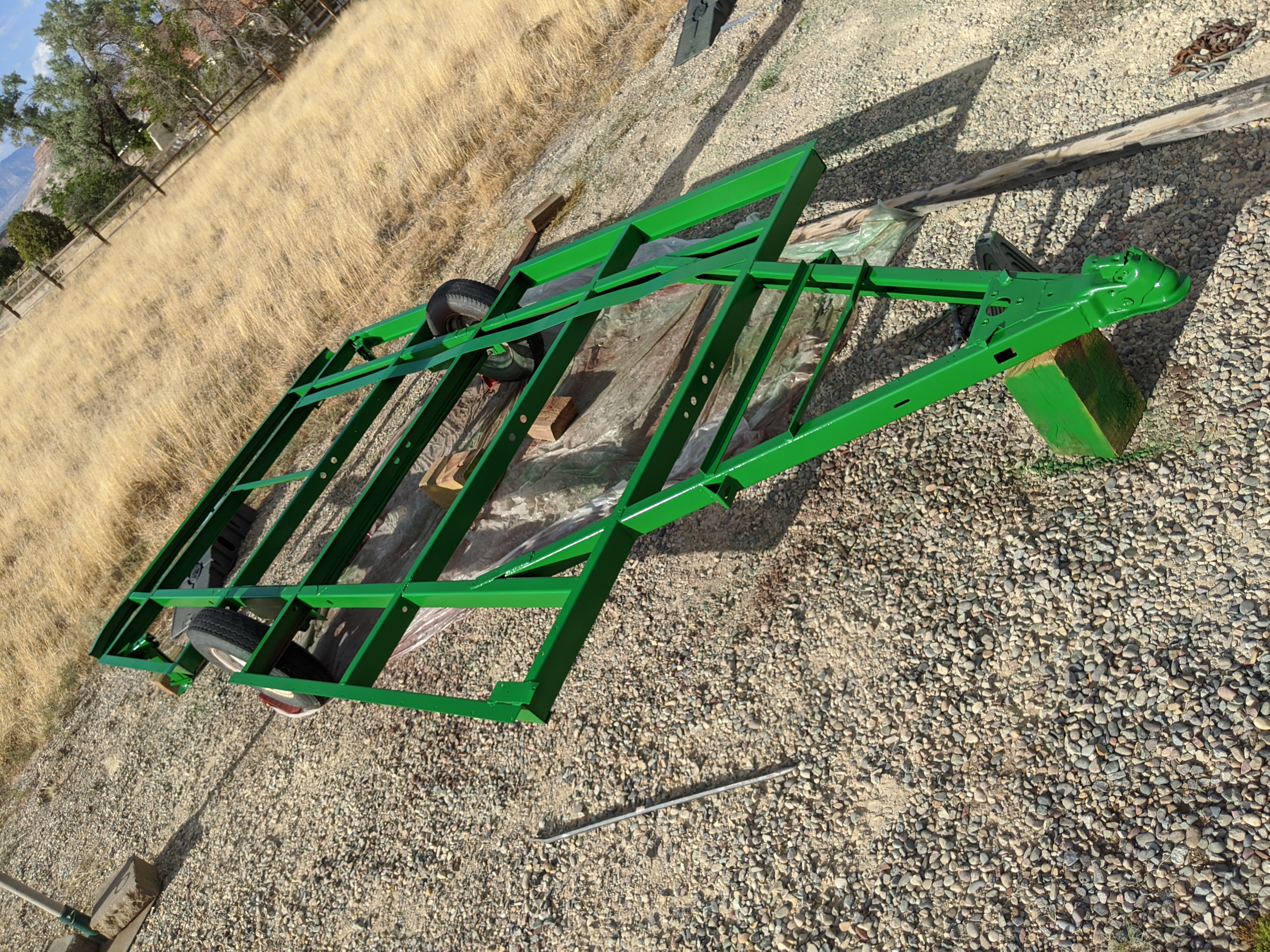 The old camper looked terrible, so I tore it down to its bones and repainted the frame. John Deere Green, ohhhh yeahhhh.